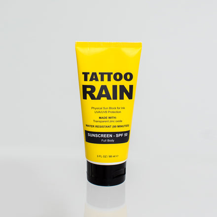 Your tattoo hates the sun. UV rays will destroy it. So you need to know, not all sunscreens are created equal. Most stop the burn and nothing more. Tattoo Rain Sunscreen stops the burn, prevents skin damage, and moisturizes all in one application by physically blocking both UVA & UVB rays from penetrating your skin. Vegan Friendly.